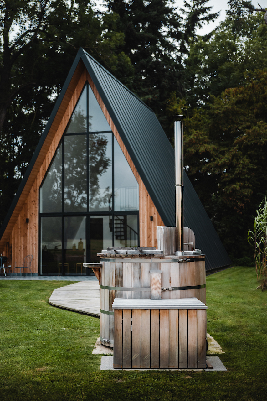 De retour dans leur Normandie natale après une parenthèse parisienne, Juliette et Richard ont décidé d’ouvrir un domaine aussi élégant qu’éclectique. Si le château abrite sept chambres coquettes mêlant inspirations scandinaves et touches vintage, le couple a également décidé d’installer trois lodges architecturaux dans son parc paysagé de 2 hectares. En lisière de forêt, ces cabanes à la charpente triangulaire en forme de A se fondent parmi la futaie. La Faguo Forest House – imaginée en collaboration avec la marque de prêt-à-porter engagée Faguo – offre une large baie vitrée de 9 mètres, dissipant ainsi la frontière entre intérieur et extérieur. Les deux chambres, la cuisine et le séjour sont baignés d’une lumière naturelle qui souligne le design minimaliste des lieux. Après avoir passé la journée au grand air, les hôtes sont invités à prolonger la communion avec la nature en se relaxant dans le bain nordique puis en profitant d’une soirée sous les étoiles au coin du feu. Le bonheur à l’état pur.