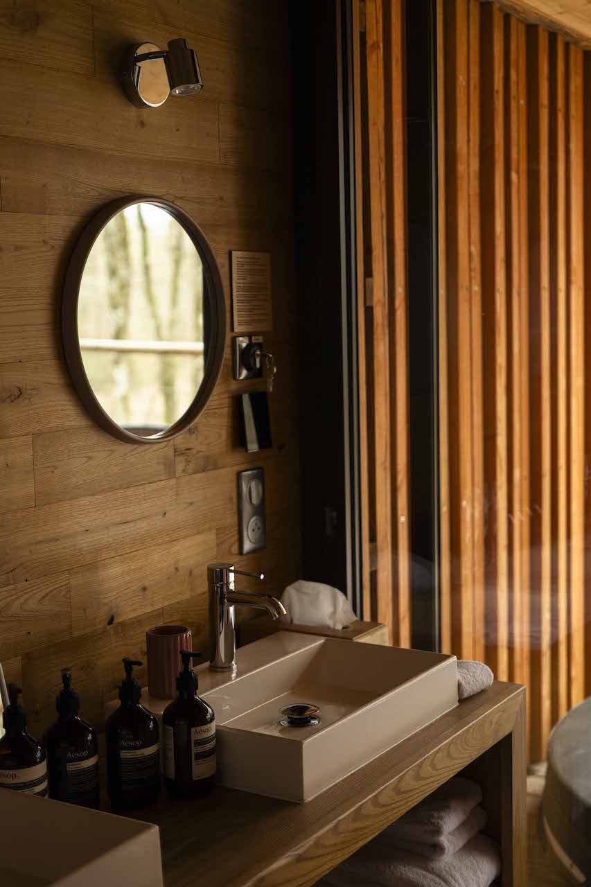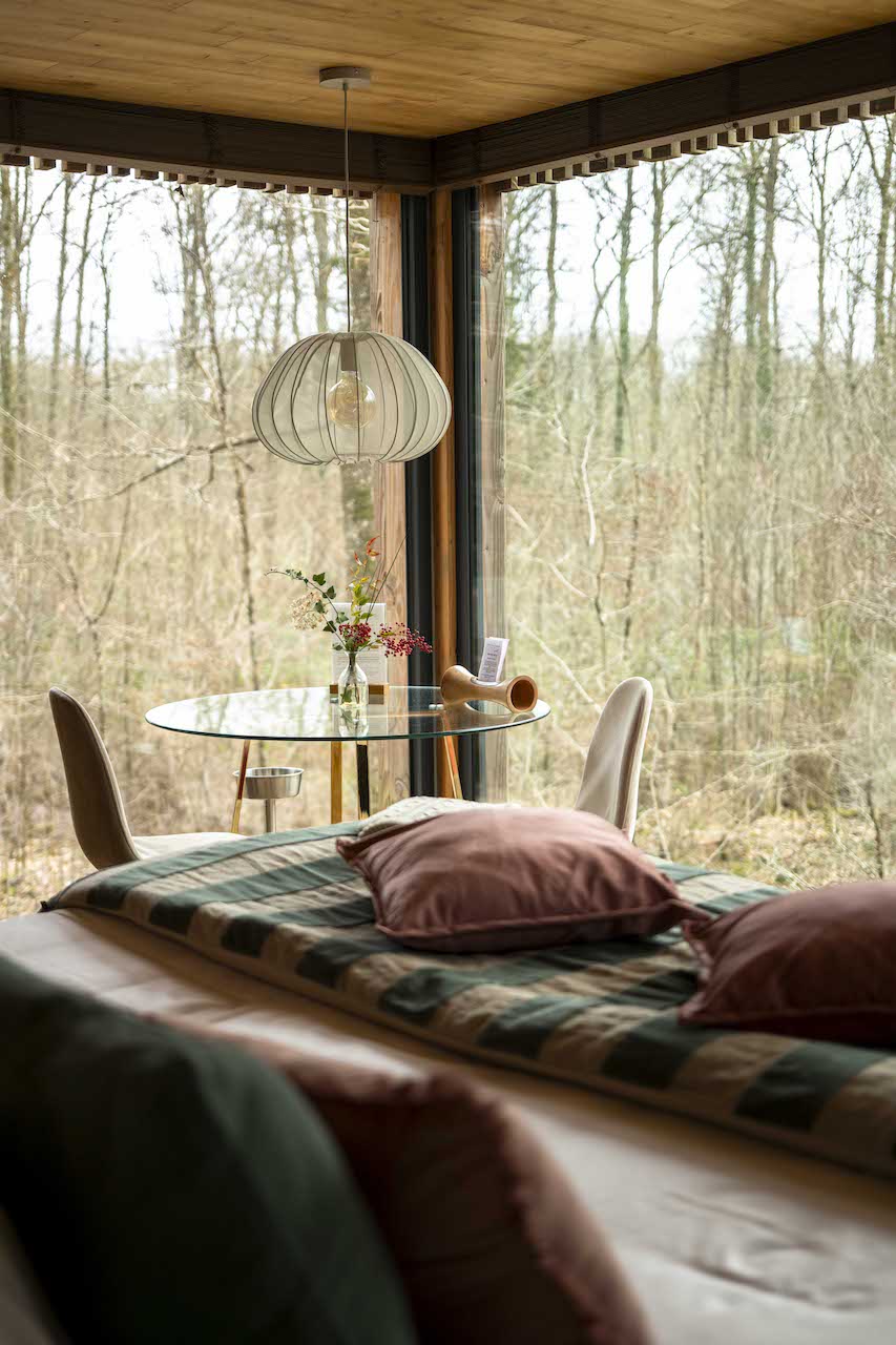 Au centre de la Belgique, la province du Brabant flamand est un secret bien gardé. On traverse avec bonheur ses paysages – des collines vallonnées ponctuées de prairies et vergers, des forêts anciennes abritant des arbres remarquables – pour se rendre chez Jérôme et Olivia. C’est ici, au bord d’un étang, que le couple a trouvé son petit coin de paradis et décidé de le partager aux voyageurs en quête de détente et de liberté. Deux tiny houses – The Forest et Kuro – imaginées et construites par Jérôme les accueillent, alliant subtilement le charme de la cabane au fond des bois au confort moderne. Matériaux nobles (à l’instar du chêne), cuisine équipée, mobilier du label anversois Ethnicraft… rien n’a été laissé au hasard, offrant l’équilibre parfait entre design et écoresponsabilité. Ici les journées s’étirent entre balades en forêt, kayak sur l’étang et lectures au bord de l’eau.