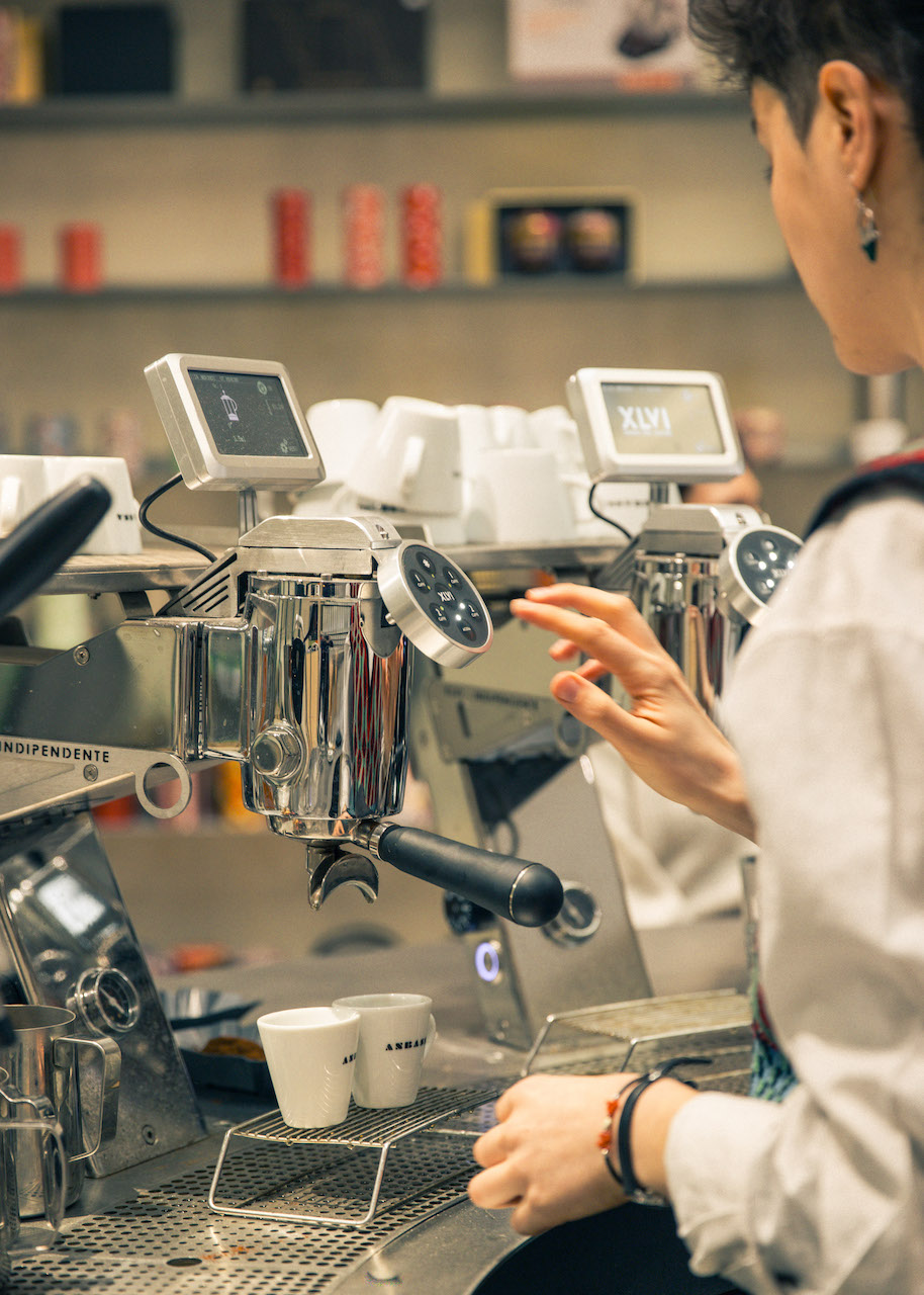 café vert issu d’une quinzaine d’autres terroirs attendent d’être révélés par les torréfactions du jour (visibles à travers les vitres de l’atelier). Toutes sont pensées pour exacerber la typicité de chaque origine et sublimer la potion désirée. Derrière le comptoir, le barista orchestre un ballet de créations, transformant le visiteur en amateur éclairé. Méthodes douces (piston, Chemex, Hario V60, cold brew, etc.) ou espresso : ici, tout peut être goûté, testé, puis emporté pour prolonger l’expérience à la maison :