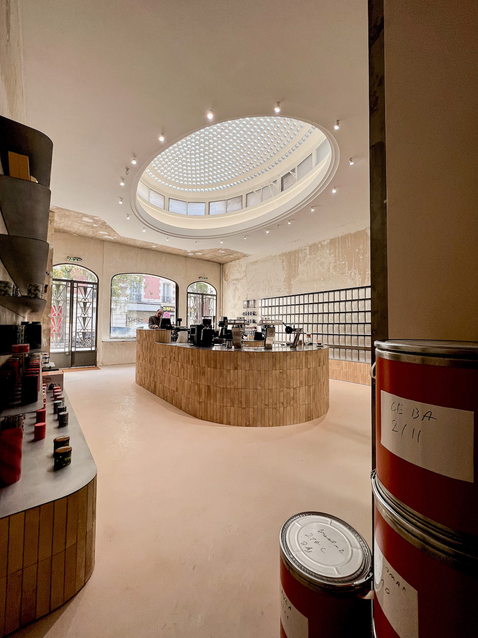 Anbassa enchante les amateurs de beau et de bon. Niché dans un bâtiment Art déco des années trente, l’atelier- boutique pantinois déploie sous trois coupoles spectaculaires autant d’espaces dédiés à la torréfaction, à la dégustation et à la vente, illustrant toute l’expertise de Sylvain Chauvineau. Grand connaisseur de la région de Walaga, berceau éthiopien du café arabica, il met à l’honneur des cafés au corps prononcé, aux notes de cacao, d’épices et parfois même de fruits mûrs. Dans l’espace dégustation, des sacs de