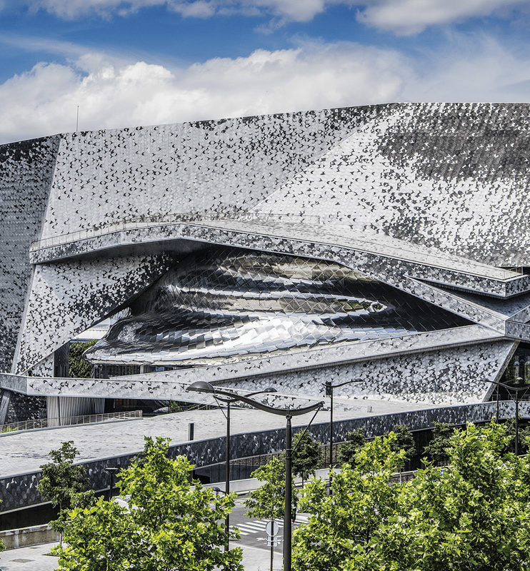 Œuvre de Jean Nouvel, cette architecture contemporaine à la peau d’aluminium perforée joue avec la lumière et les reflets. Le bâtiment longe le parc de la Villette, tandis que ses intérieurs accueillent concerts, expositions et espaces pédagogiques.