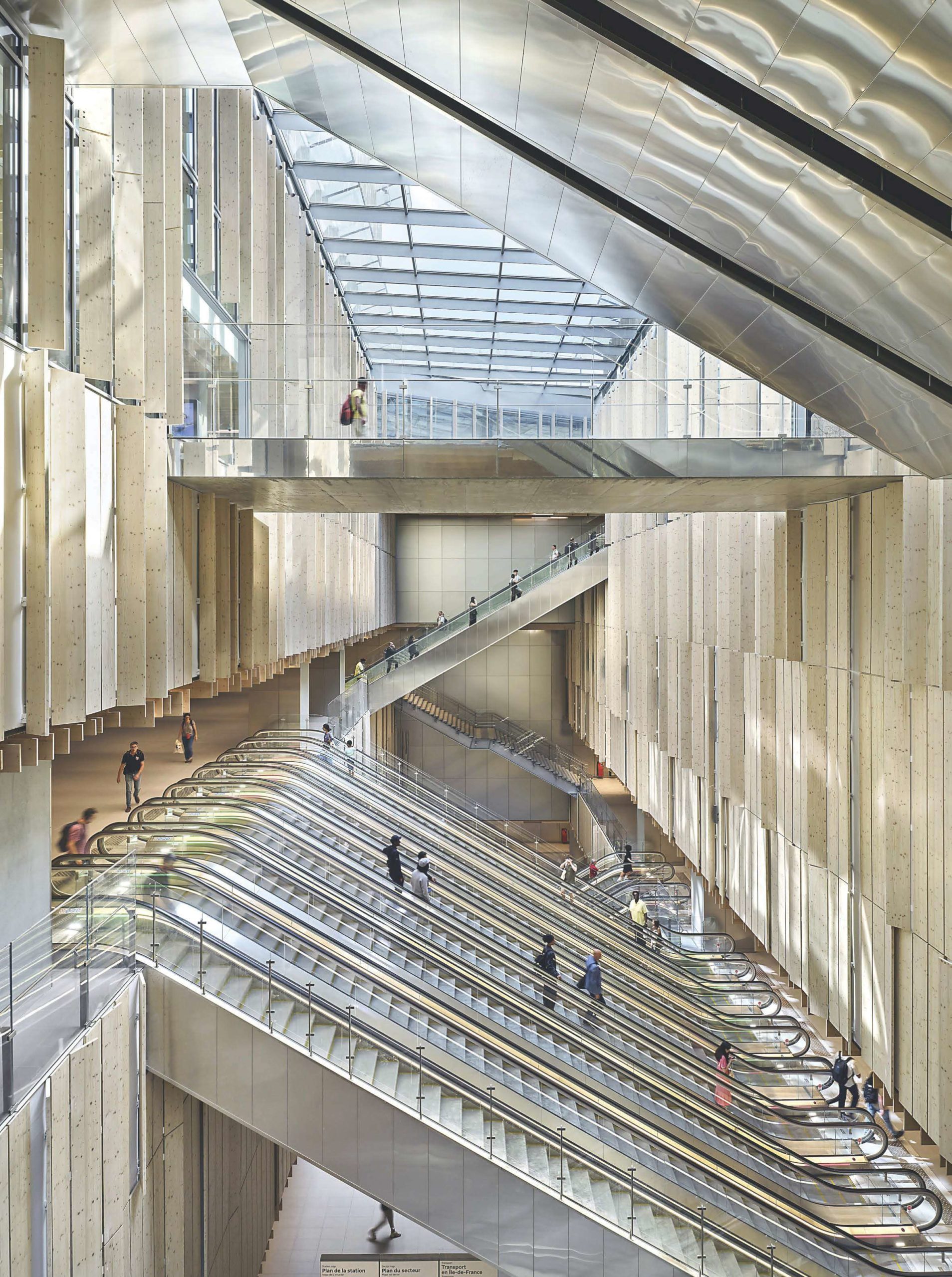 Signée Kengo Kuma, la nouvelle gare Saint-Denis-Pleyel combine volumes audacieux et matériaux naturels comme le bois. Avec ses façades en lames verticales, ses niveaux superposés et son toit lumineux, elle devient un point central et architectural du Grand Paris Express.