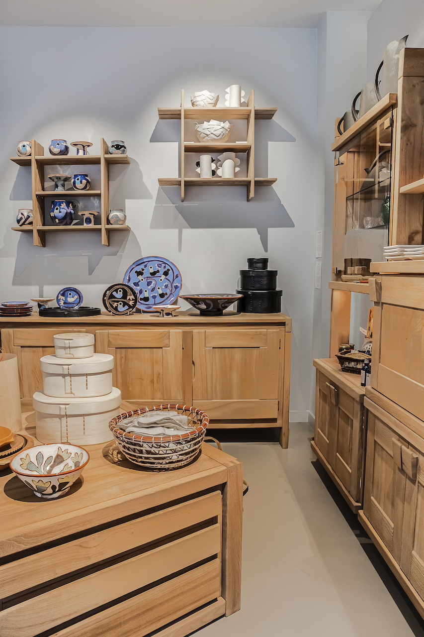 Au 232 boulevard Saint-Germain, la boutique rassemble une sélection éclectique : mobilier, arts de la table, luminaires, décoration. Derrière chaque pièce se cache un artisan : brodeur, coutelier, céramiste ou maître cirier, qui travaille la matière avec précision. Rien n’est produit en série : chaque objet est unique, avec ses petites irrégularités, preuve d’un travail authentique.