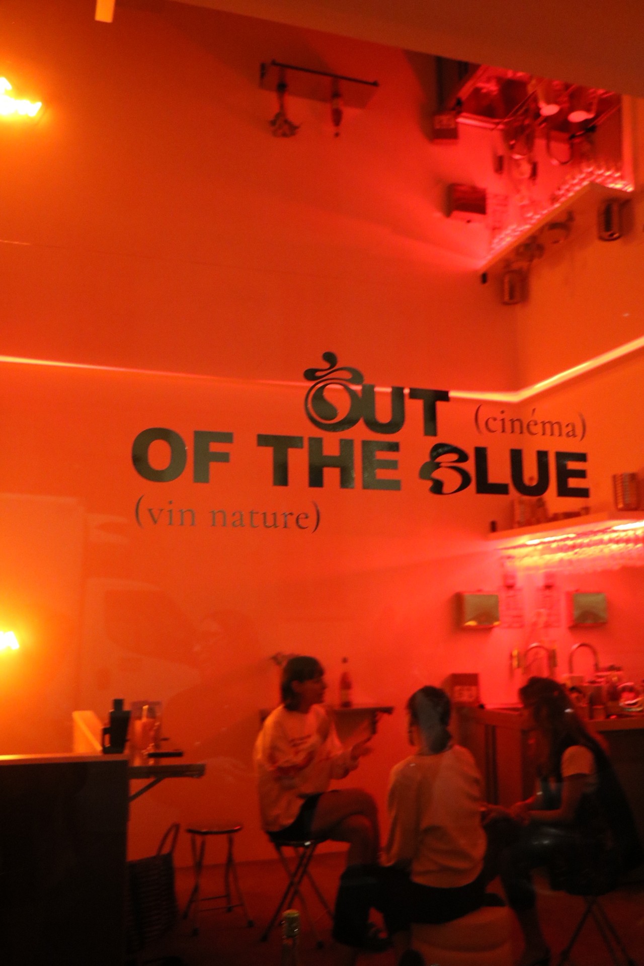 Quand les températures chutent et que l’envie de Netflix au fond du canapé se fait sentir, Out of the Blue propose une alternative bien plus stimulante. De l’extérieur, le néon « cinéma » attire l’œil et la pancarte « bar » suscite la curiosité. Un look qui n’a rien à voir avec celui du bistrot d’à côté ou encore celui d’un cinéma traditionnel. Pourtant on y vient boire du vin nature et goûter des assiettes de fromages ou des popcorns devant une projection.