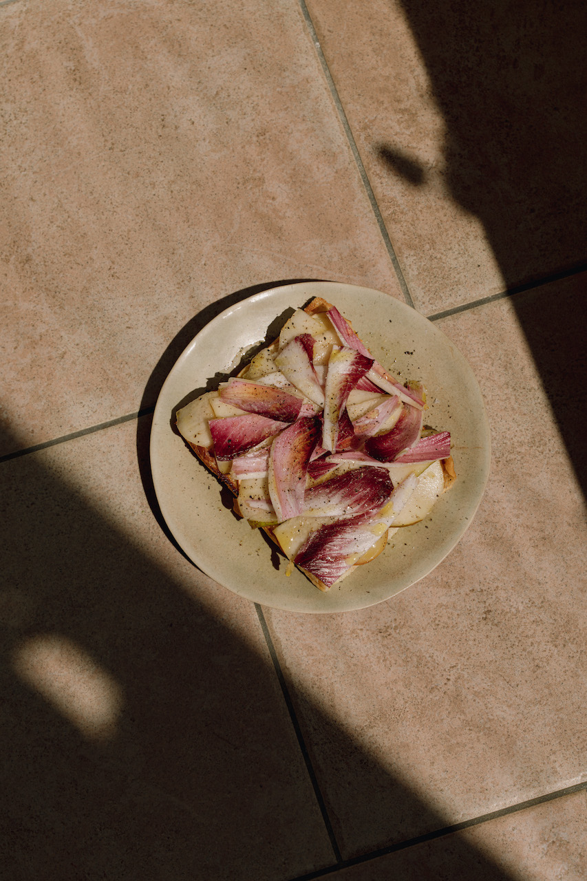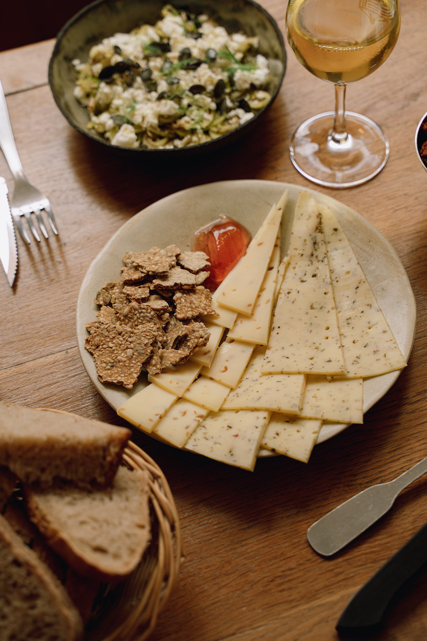 Silo est un bar à vins et un café, qui est ouvert du mercredi au dimanche soir et le samedi midi, car c’est un jour de marché durant lequel on propose un menu un peu plus “brunch”, avec pancakes, cookies, etc. Dans les assiettes que prépare Marie, qu’il s’agisse d’une salade, d’un sandwich toasté ou d’un apéro, on va à l’essentiel grâce à des produits locaux que l’on source en direct auprès des producteurs. Nous voulions que cela soit simple et abordable, pour que sur un coup de tête les gens puissent venir boire un verre et grignoter ce qui les tente. Fromage de chèvre de la Chèvrerie des Huppes, feta produite à la ferme du Val Primbert, gouda normand, légumes cultivés dans le coin, charcutiers de Mortagne-au-Perche qui produisent du boudin noir fumé, boulangerie des Pains de Saint-Hilaire : nous faisons au plus simple, au plus court et au meilleur ! Nos seules exceptions : des anchois du Pays basque et la mozzarella de @nanina75011, fabriquée à Paris avec du lait d’ Auvergne. Quant à notre cave, qui compte environ 500 références de vins nature et majoritairement sans soufre ajouté, c’est la même philosophie ! On ne travaille qu’en France, en direct avec les vignerons et vigneronnes. Une grande partie de nos vins vient de la Loire, une région qui se situe à seulement deux heures d’ici.