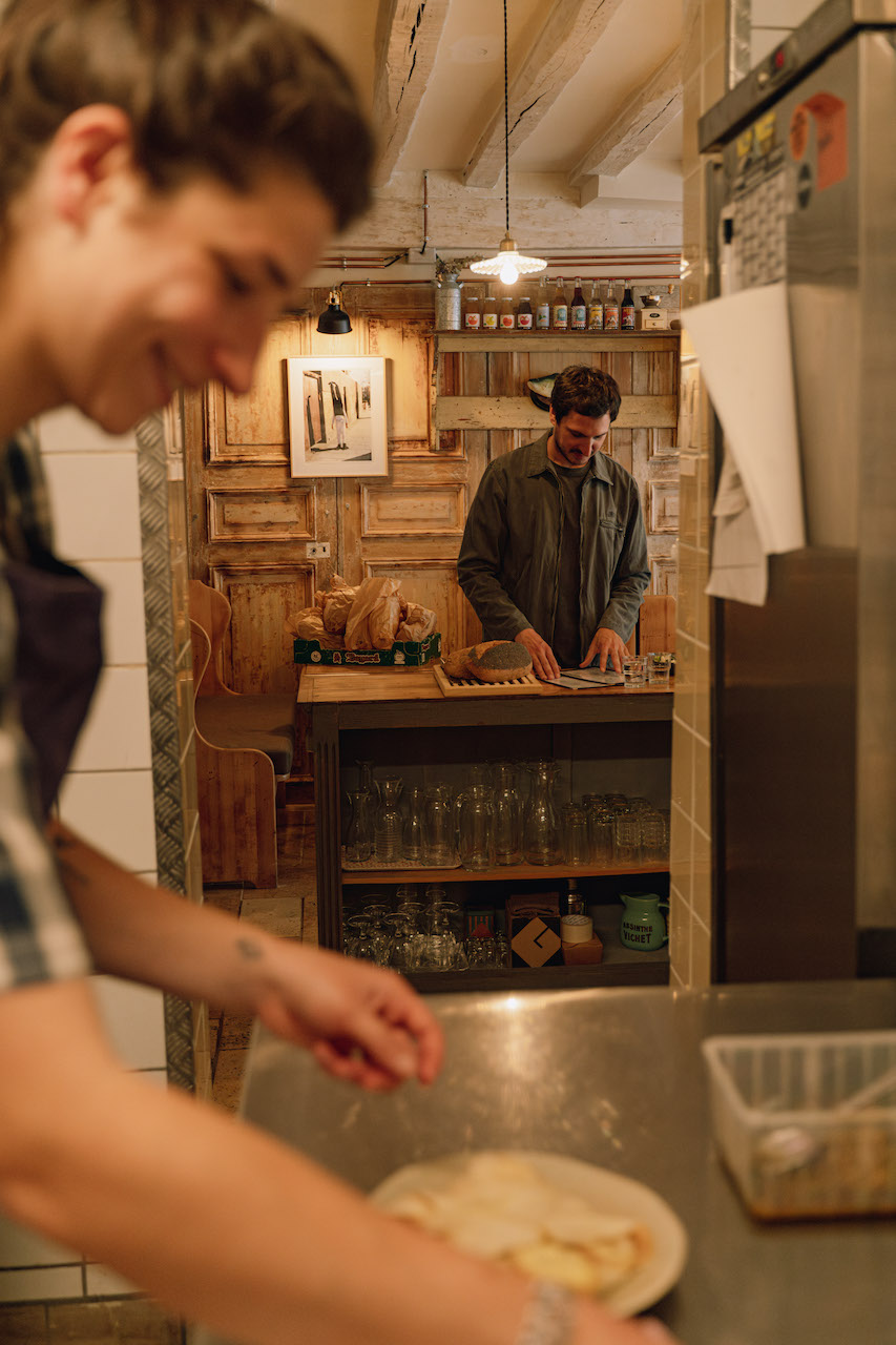 Oui ; depuis le début, nous organisons environ une fois par mois Silobration, un pop-up de deux dîners durant lesquels nous confions notre cuisine à un (ou une) chef(fe). Humainement, c’est génial, car nous passons deux jours intenses avec une personne que l’on ne connaît pas toujours, et à la fin, c’est comme si nous avions passé plusieurs semaines ensemble ; on crée de vrais liens d’amitié ! Cela nous permet aussi d’être surpris par de nouvelles cuisines et de les faire découvrir à notre clientèle. Nos habitués adorent ces soirées. On a par exemple reçu Jonathan Schweizer du Café Les Deux Gares, Théo Léonard – un jeune chef bruxellois épatant –, ou encore la cheffe taïwanaise Demi Yeh. D’ici fin 2025, nous accueillerons Giovanni Passerini du restaurant Passerini et le Bistrot Paul Bert pour un “take-over bistrotier”. Dans un style un peu plus relax et street food, nous organi- sons The Good Slice, soit une soirée pizza & vino, et Atelier Raisin, qui est une dégustation en petit comité avec un vigneron ou une vigneronne. Soirée vin et pâté en croûte pour la Saint-Valentin, pop-up de chef(fe)s d’une semaine, week-end en duo avec une autre cave : on a toujours de nouvelles idées.