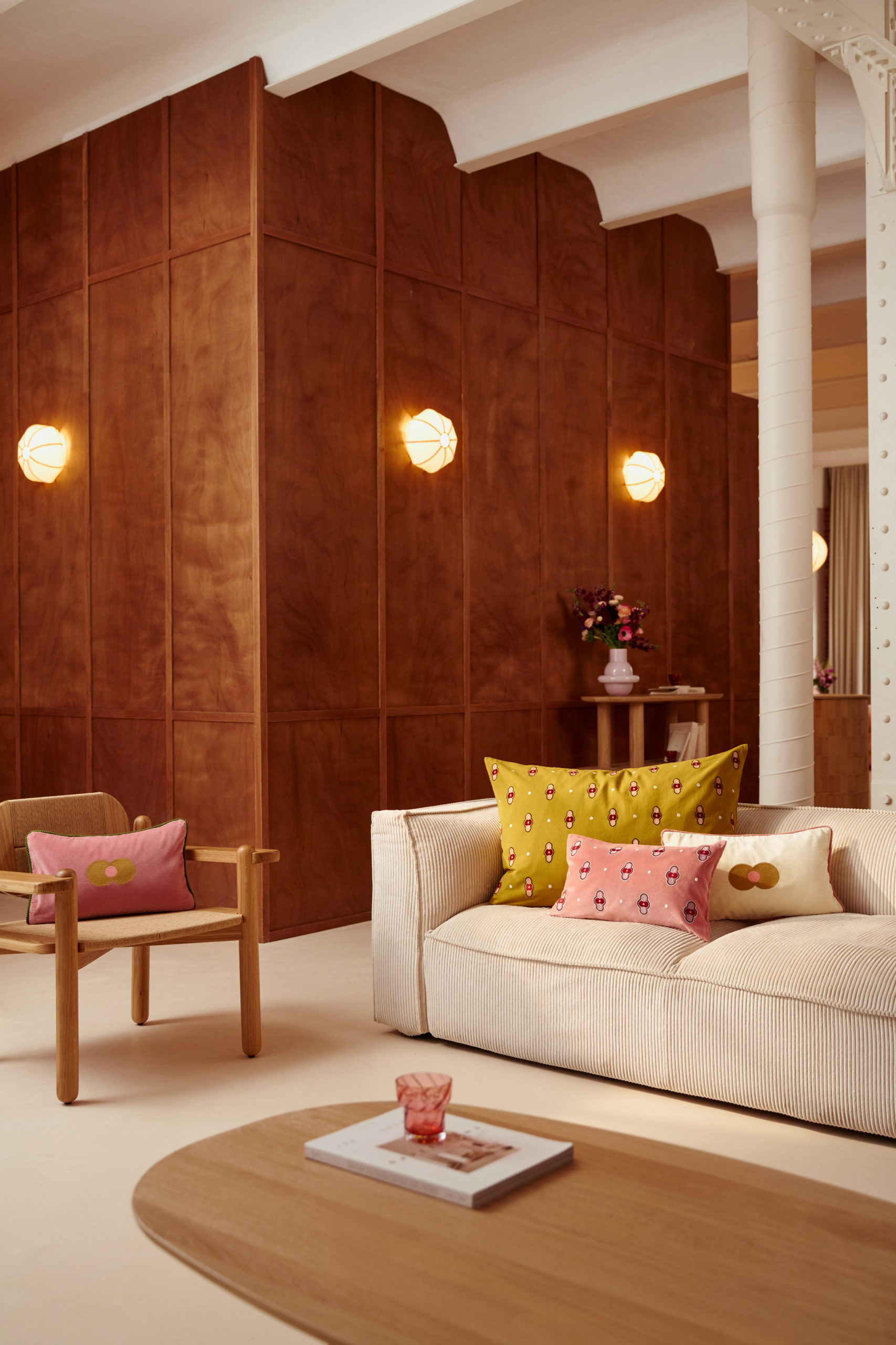 Maître du linge de lit (mais pas que), Bonsoirs propose des créations qui allient confort et design depuis 2017. Quant à l’univers de Margaux Keller, toujours délicat, créatif et optimiste, il inspire aux rêves et à la magie. Pour cette collection, direction le soleil avec comme thématique : les toiles d’indiennes provençales. Des coeurs couleurs chaudes – bordeaux profond, ocre, vert olive, crème, rose poudrée – et leurs motifs répétitifs géométriques – petites formes florales stylisées, quadrillages souples et rythmiques, abeilles, soleils stylisés… Une collection chaleureuse et artisanale, mêlant tradition rurale du Sud de la France et graphisme contemporain. On y ressent une atmosphère de mémoire, de soleil et de nature.