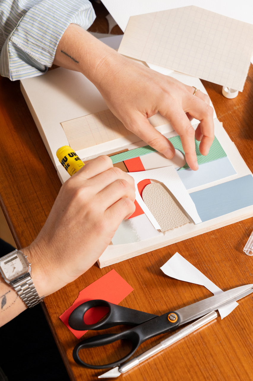 Et si le cuir devenait toile ? Pour L’Art du Savoir, Le Tanneur invite Amélie Dubois, plasticienne et fondatrice de Maison Moche, à composer un paysage urbaine sur leurs sacs. Armée de chutes de cuir, l’artiste crée des silhouettes, des scènes du quotidien : une marche en ville, une halte au soleil, une conversation suspendue dans le temps. Entre savoir-faire maroquinier et regard poétique, cette collaboration célèbre la beauté des gestes simples.