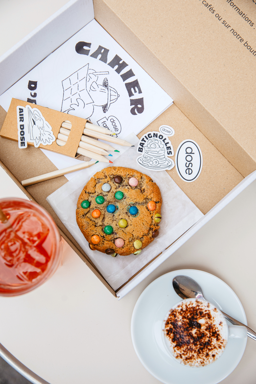 Les cafés/torréfacteurs Dose s’associent avec l’artiste/dessinateur Jean André pour créer une collaboration kids friendly. Ils signent ensemble une formule « goûter cool-kids » : une boisson – un babyccino ou une grenadine, et un généreux Cookids accompagnés d’un carnet d’activités dessiné par Jean André. De quoi réveiller l’esprit créatif des petits mais aussi peut-être des grands pendant la pause tant attendue !