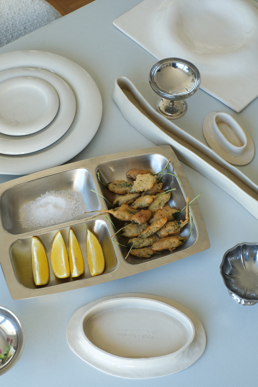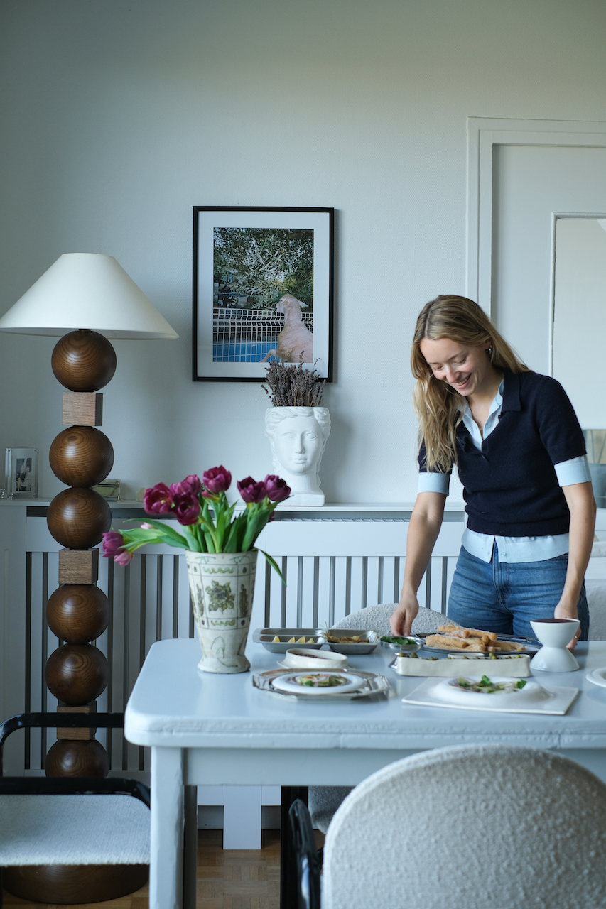 Lors des week-ends entre amis, j’étais toujours celle qui cuisinait. Ce sont donc eux qui, au départ, m’ont encouragée à montrer ce que je savais faire en cuisine et à l’associer à ma pratique du design. Cela s’est d’abord traduit par des scénographies de buffets ou, en 2023, lors du lancement de ma nouvelle collection de lampes en bois : j’avais sculpté du pain, du beurre et du chocolat en forme de lampe. Désormais, je crée du contenu culinaire pour des marques et j’interviens de plus en plus en tant que food stylist et set designer sur des shootings mode ou lifestyle. Je suis un peu hyperactive, donc en parallèle, je travaille aussi sur un projet de design autour de petits objets d’art de la table.