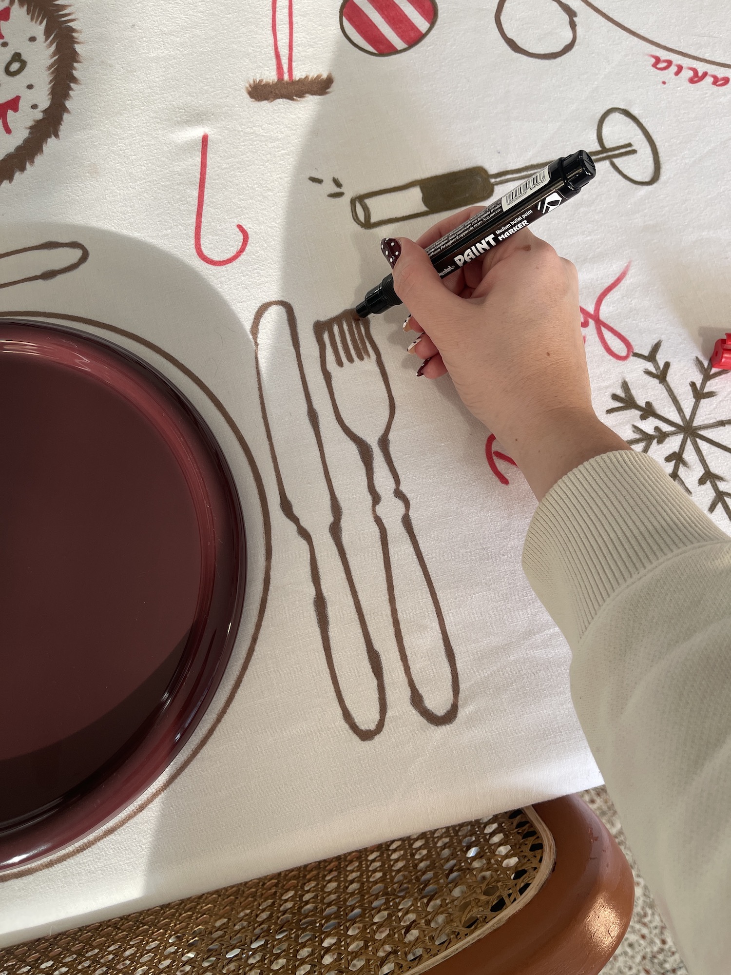 Laissez libre court à votre créativité ! Ajoutez le nom des convives en guide se marque-place, dessinez quelques éléments festifs comme des branches de sapin, du gui, des chandeliers… Pensez à garder quelques espaces vide pour y ajouter de la décoration de table.