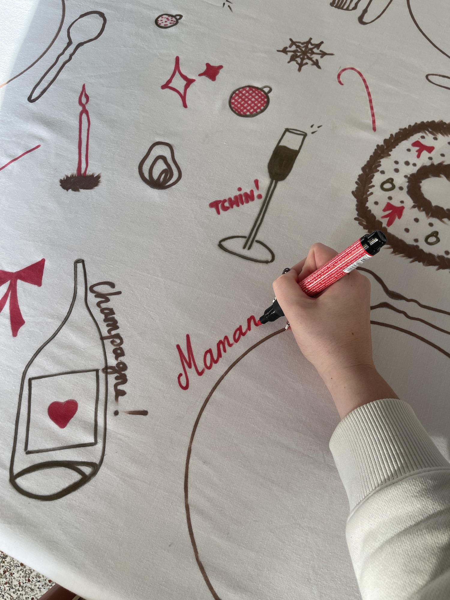 À l’approche des fêtes, on imagine déjà l’odeur du sapin, les lumières scintillantes et les repas qui rassemblent toute la famille. Et si cette année, vous ajoutiez une touche encore plus personnelle à votre décoration de table ? Dans ce DIY, @solene_upcycling vous propose de transformer une nappe simple en une pièce maîtresse pleine de charme et d’originalité, parfaite pour sublimer votre réveillon. Un do it yourself personnalisable à l’infini en fonction de votre humeur, vos compétences en dessin, votre ambiance déco à la maison. Et surtout une manière de recycler d’anciens textiles ou des draps troués.