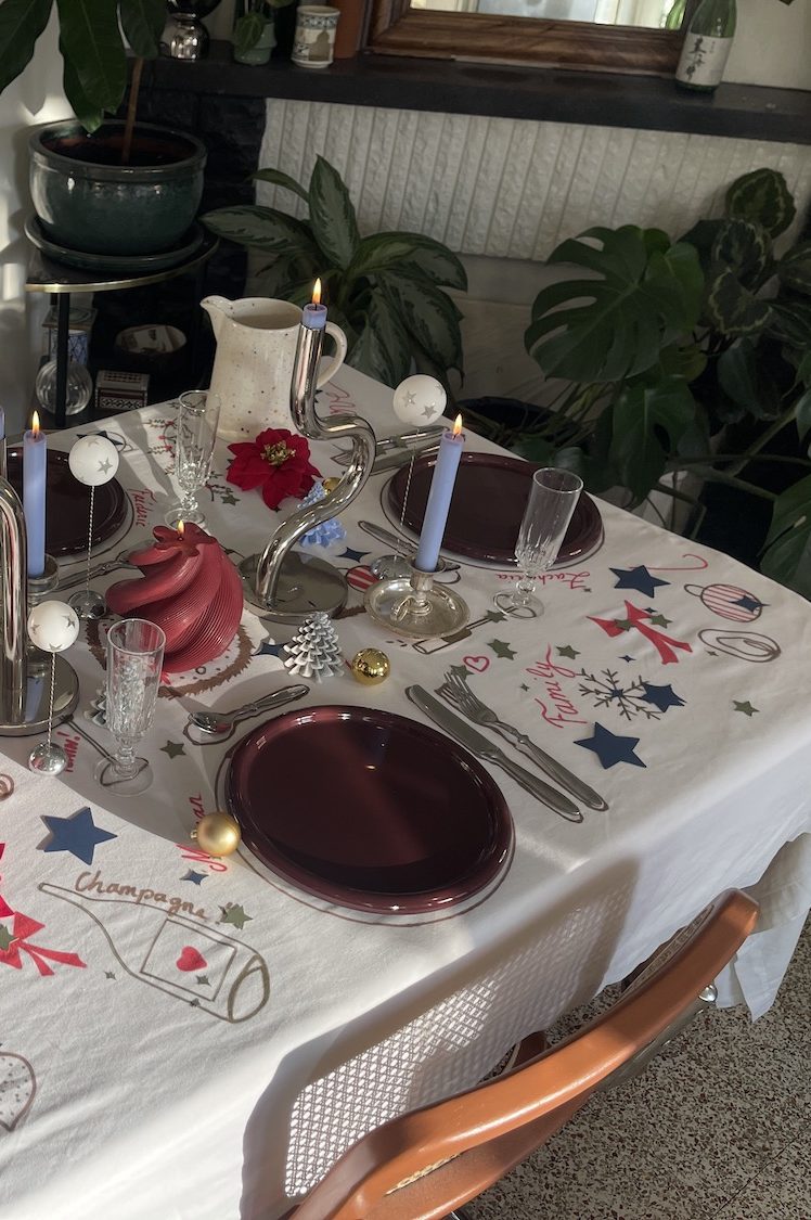 Installez votre nappe personnalisée et composez une belle table de Noël pour mettre en valeur votre création.