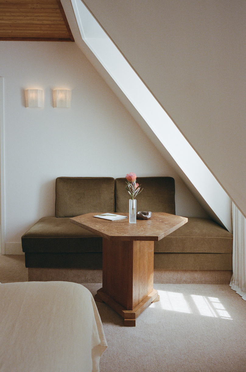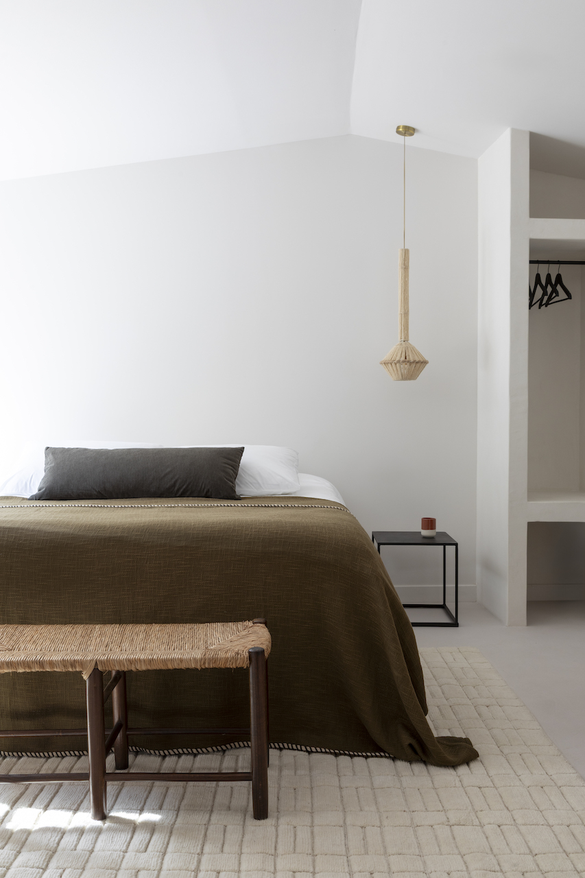 Au cœur de la Drôme provençale, une adresse érige la paresse en art de vivre et la célèbre avec malice. De retour dans sa région natale, Jeanne a confié au duo d’architectes décorateurs Laëtitia et Luc Boulant la rénovation d’une bâtisse de 1905 aux pierres apparentes et à la toiture en tuiles romanes, qui trône fièrement au centre du village de Marsanne. Baptisé Pantoufle, l’hôtel assume son clin d’œil espiègle : les 17 chambres portent des noms de pointures, du 37 au 44, comme autant de cocons douillets. Les espaces, ronds et enveloppants, mêlent fibres naturelles, bois et grès, ponctués de mobilier chiné. Dans le restaurant, le chef Quentin propose une cuisine bistronomique de saison, conviviale et généreuse. Les journées sont rythmées par un plongeon dans la piscine, une partie de jeux de société, une séance de yoga et une virée dans la campagne drômoise, faisant de Pantoufle un pied-à-terre joyeux et réconfortant.