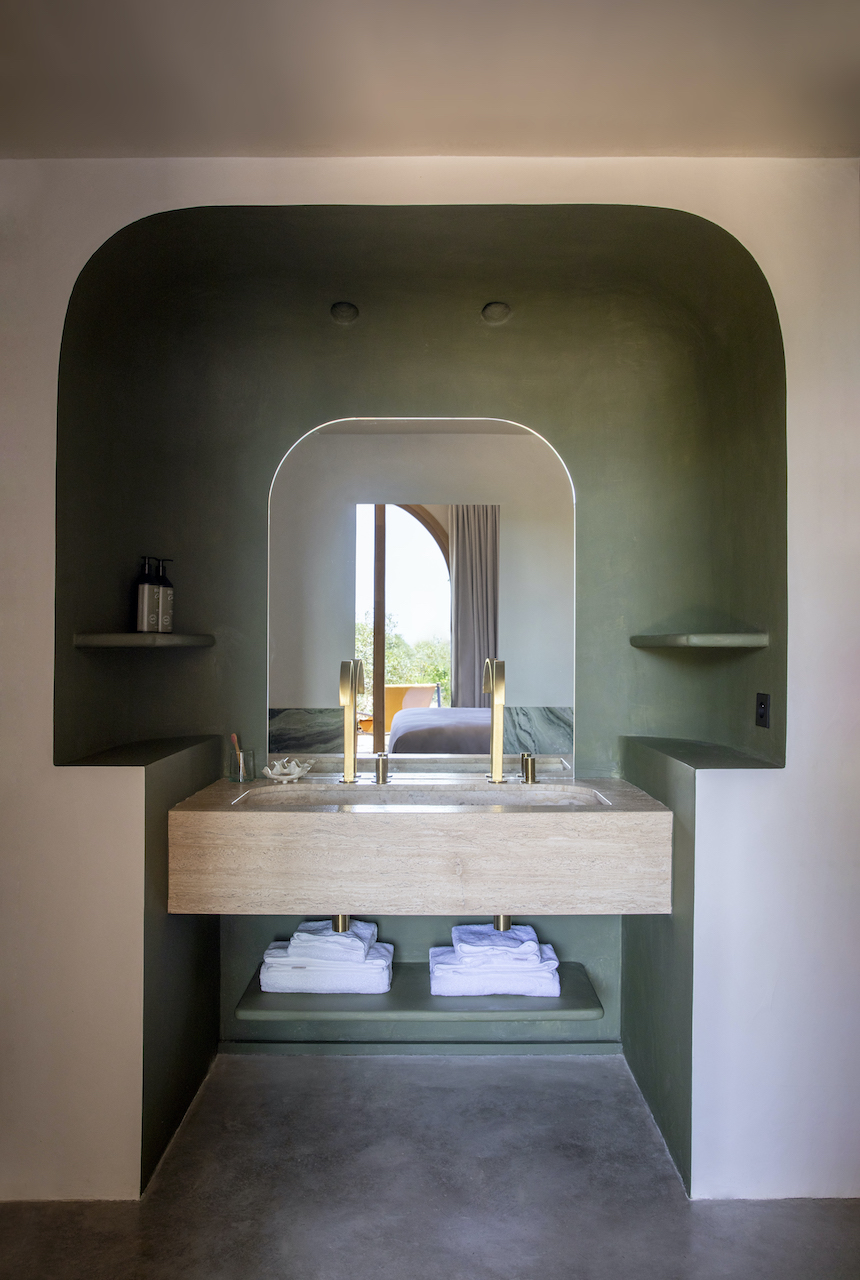 À quelques minutes du centre historique d’Aix-en-Provence, l’hôtel Le Pigonnet s’ouvre sur un domaine verdoyant. Ancienne “folie” du XVIIIe siècle (une maison de plaisance, ndlr) transformée en maison d’hôtes raffinée, cette adresse mythique a vu passer Juliette Gréco, Serge Gainsbourg ou Clint Eastwood. Ses jardins centenaires – allées de marronniers, treilles fleuries et fontaines – offrent un refuge empreint de poésie provençale. La réception, le bar et la Table du Pigonnet, repensés par Jacques Garcia, conjuguent classicisme et élégance feutrée. Trois nouvelles suites signées Thibaut Picard prolongent l’âme du lieu : tels des refuges contemporains ouverts sur la nature, elles sont parées d’un vert amande à la chaux brossée, rythmées par un sol en damier de terre cuite et meublées de pièces sur-mesure. Pour parfaire l’expérience, le spa Folie Verte de 350 mètres carrés, imaginé par l’architecte d’intérieur Marion Mailaender, invite à faire une pause mêlant soins du corps, art-thérapie et cours de chant.