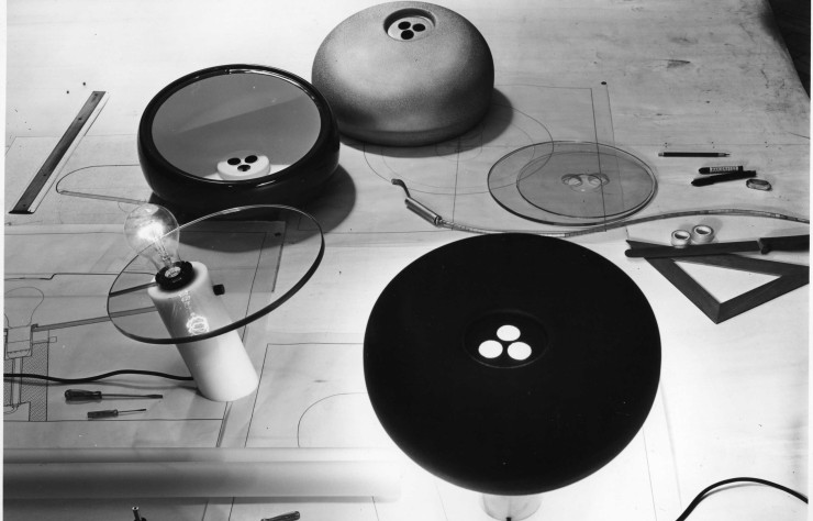 Les Castiglioni veulent que leur bel objet soit aussi pratique et ergonomique. Ainsi, l’abat-jour émaillé n’est pas simplement décoratif : il est conçu pour diriger la lumière de façon optimale, tout en évitant tout éblouissement. Les trois trous d’aération situés au sommet ne sont pas là par hasard non plus : ils rappellent la disposition des trous d’une boule de bowling, mais servent avant tout à dissiper la chaleur de l’ampoule.