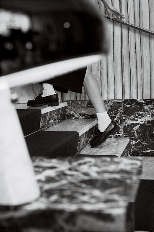 La base en marbre, elle, apporte non seulement de la stabilité, mais aussi une présence forte, sculpturale. Ce contraste entre la rigidité minérale et la souplesse du réflecteur donne à la lampe son identité.