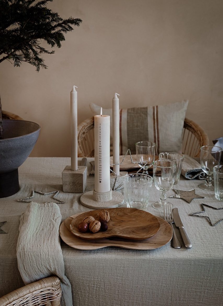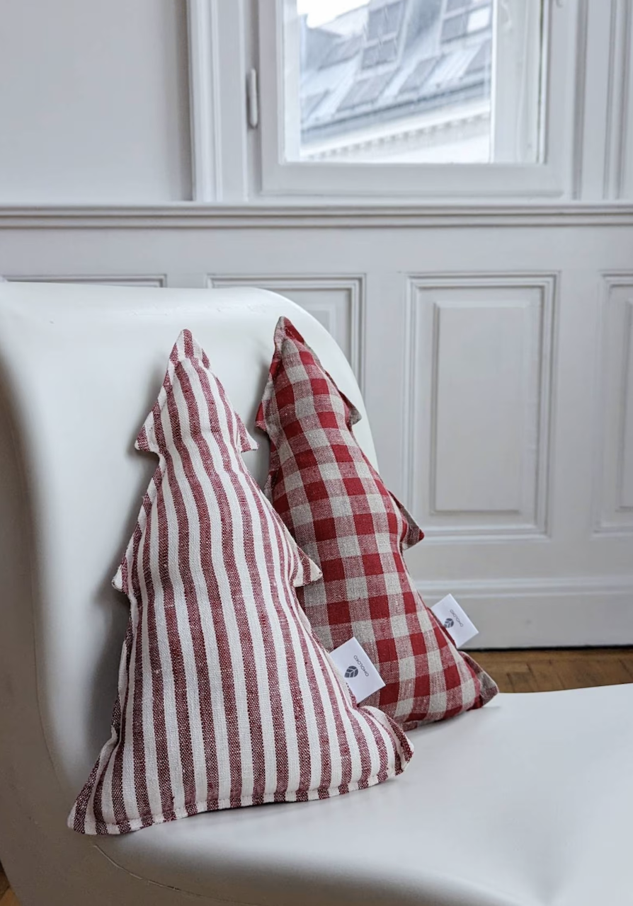 Décorer la pièce de vie pour Noël, c’est transformer l’ordinaire en parenthèse enchantée. Devant la fenêtre, une couronne en laiton s’illumine à l’aide de bougies, comme une promesse de chaleur au cœur de l’hiver. Sur le canapé et suspendus à la cheminée, coussins en forme de sapin et nœuds XXL au motif vichy apportent une note rustique bienvenue. Et puis, il y a le parfum, essentiel à l’atmosphère : celui du pin blanc qui emplit l’air, discret mais enveloppant. Pendant un mois, le quotidien prend un autre goût : celui d’un cocon où l’on aime se retrouver, blottis, pour attendre patiemment le jour J.