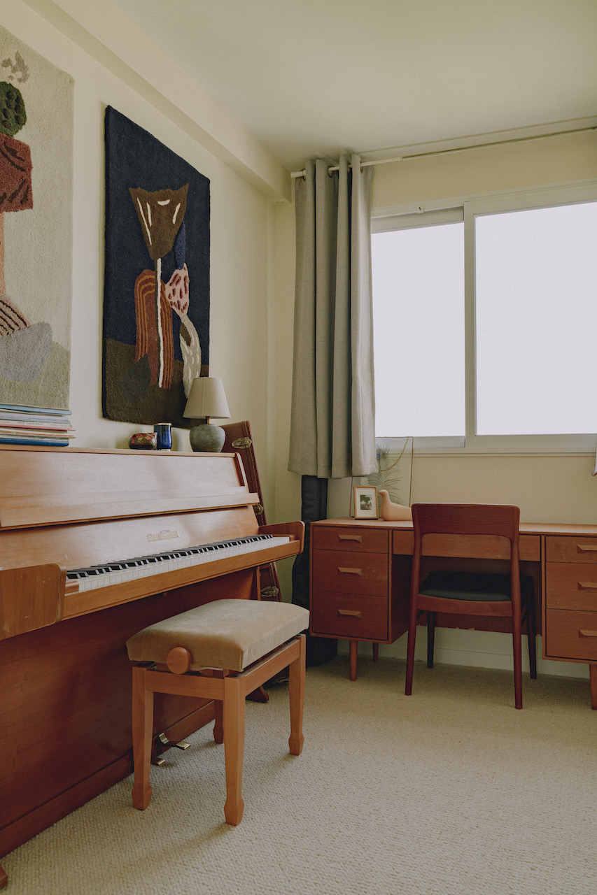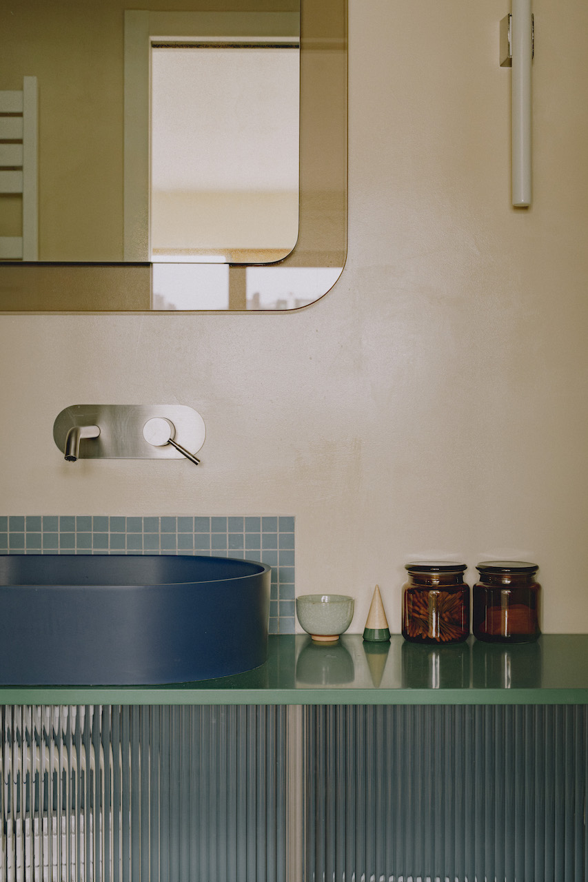 De la structure aux objets choisis ou réinterprétés, la rénovation de cet appartement incarne la signature de l’architecte et une réflexion appliquée au rythme d’une vie de famille, soit un goût pour les détails justes et les matières chaleureuses, qui cohabite avec une manière d’habiter fluide et fonctionnelle. Et quand on demande à Inès quelle est sa pièce préférée, elle répond sans hésiter : « La cuisine. C’est vraiment le cœur de la maison. On y cuisine beaucoup, on reçoit énormément d’amis, souvent des artistes, des musiciens. Le salon est pensé comme un espace très vivant, où les usages se mélangent naturellement. L’été, on ouvre grand les fenêtres et on profite de la vue. Je ne m’en lasse jamais : ce ciel et cette lumière, c’est vraiment précieux ! »