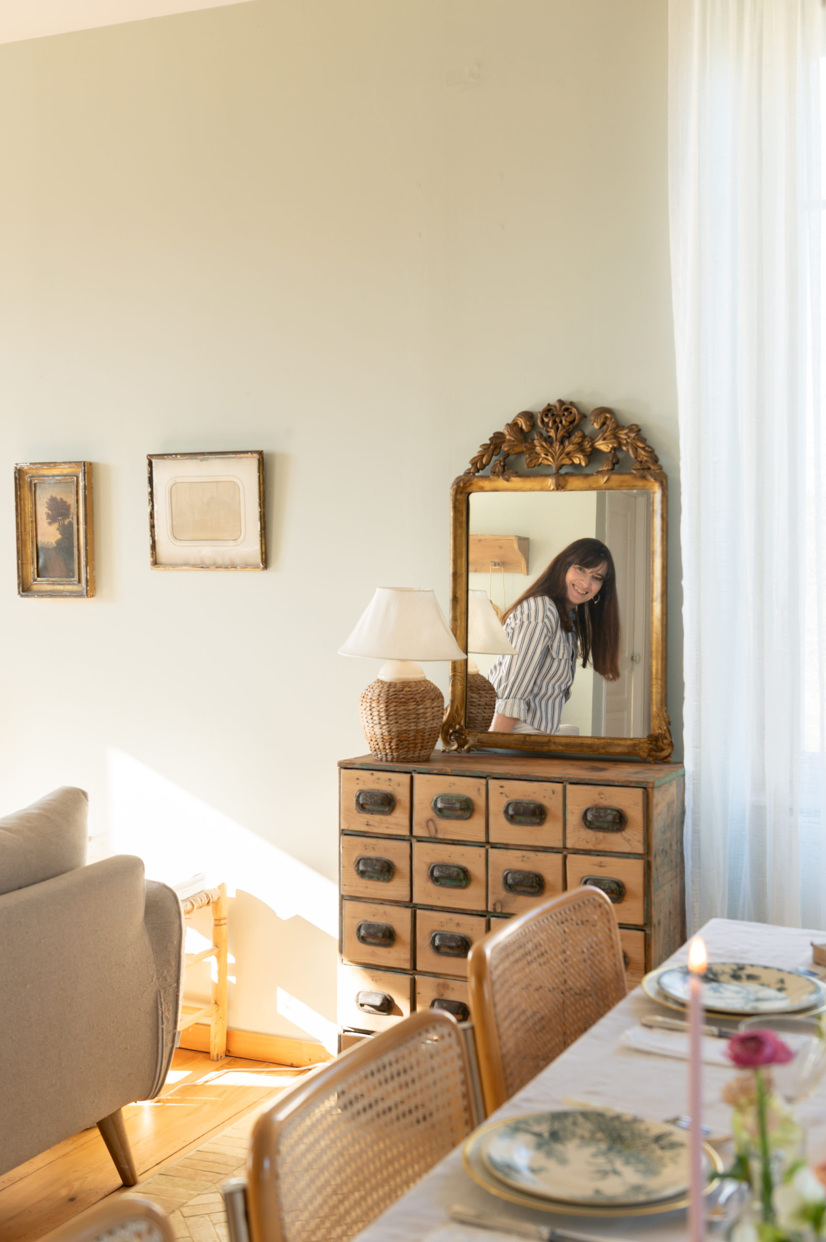 « Elles cassent un peu les codes dans la maison, comme le bejmat. J’aime quand c’est patiné, quand il y a des imperfections. Je fonctionne au feeling et je laisse les choses vivre. Avant, je faisais beaucoup tourner ma décoration, mais là, j’arrive à un point où mon intérieur est harmonieux tel qu’il est. Cela ne m’empêche pas de chiner des objets sans savoir ce que je vais en faire sur le moment, mais seulement parce que je les trouve beaux ! »