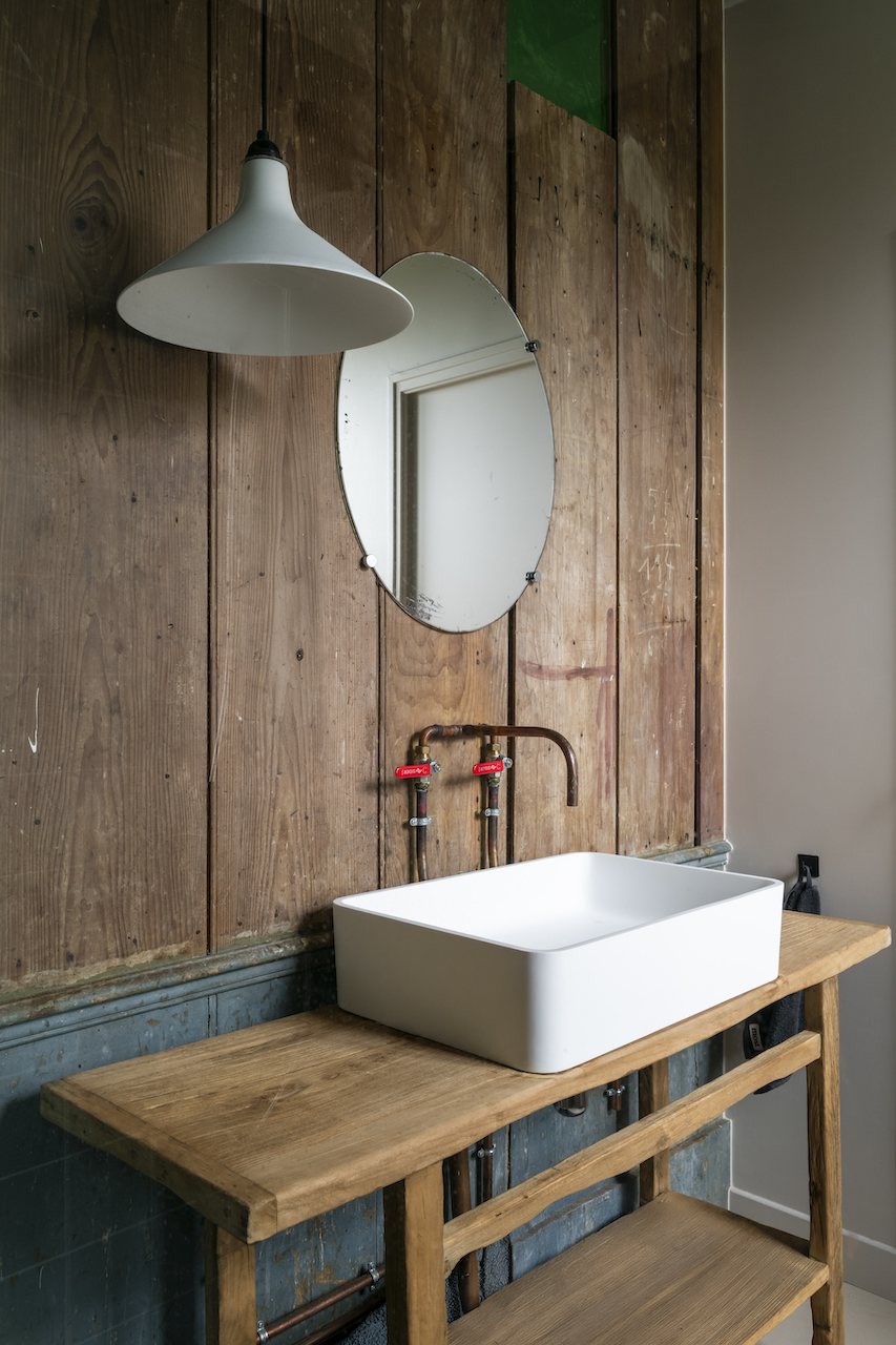 Choisie pour son emplacement privilégié à seulement une heure de Paris, au cœur d’une nature préservée, la petite maison de campagne nécessitait toutefois une rénovation intégrale. « L’intérieur était vraiment dans son jus, sans le moindre confort ! Il manquait de l’espace pour y être avec nos trois enfants et nos amis », racontent les propriétaires, un couple de Parisiens en quête d’une maison au vert pour les week-ends et les vacances. Originaires de la région et spécialistes du patrimoine local, l’architecte Amélie Collard et son mari Sylvain Armand, de l’agence Terres, étaient les plus à même de transformer l’existant. La maison a pu être agrandie en exploitant des espaces annexes : un porche et une dépendance, désormais reliés à l’habitation. La cuisine, largement ouverte sur le jardin grâce à une baie vitrée de pleine hauteur, a pris place sous l’ancien porche.