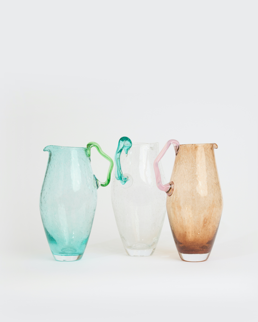 La Romaine Édition, carafes Ruban en verre bullé réalisée par un maître verrier à Biot.