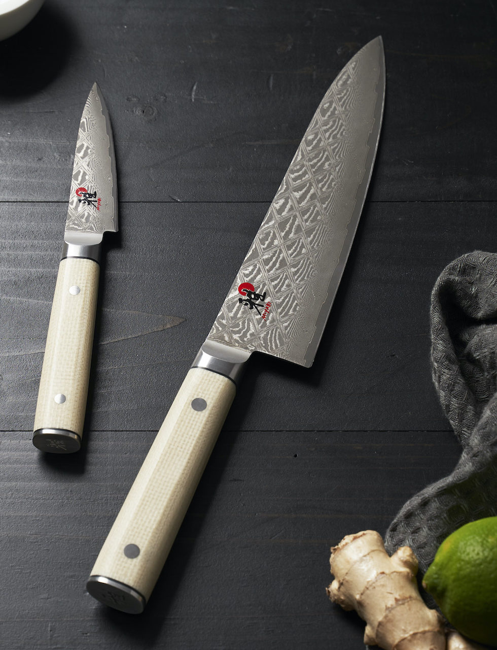 100 étapes, 42 jours : c’est le temps nécessaire pour façonner un couteau aux standards Miyabi. Dans la culture japonaise, la perfection n’est jamais un acquis, mais une quête permanente. Les artisans de Miyabi appliquent un savoir-faire rigoureux pour transformer chaque morceau d’acier en pièce d’une précision absolue. La maîtrise de la méthode Honbazuke (affûtage à la main) nécessite plusieurs années d’apprentissage. Le nom même de la marque se traduit par “élégance” ou “raffinement”, reflet d’un art où chaque détail compte. Les gammes sont variées : chaque lame répond à un usage spécifique pour magnifier l’aliment et en préserver l’essence.