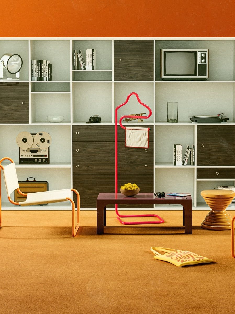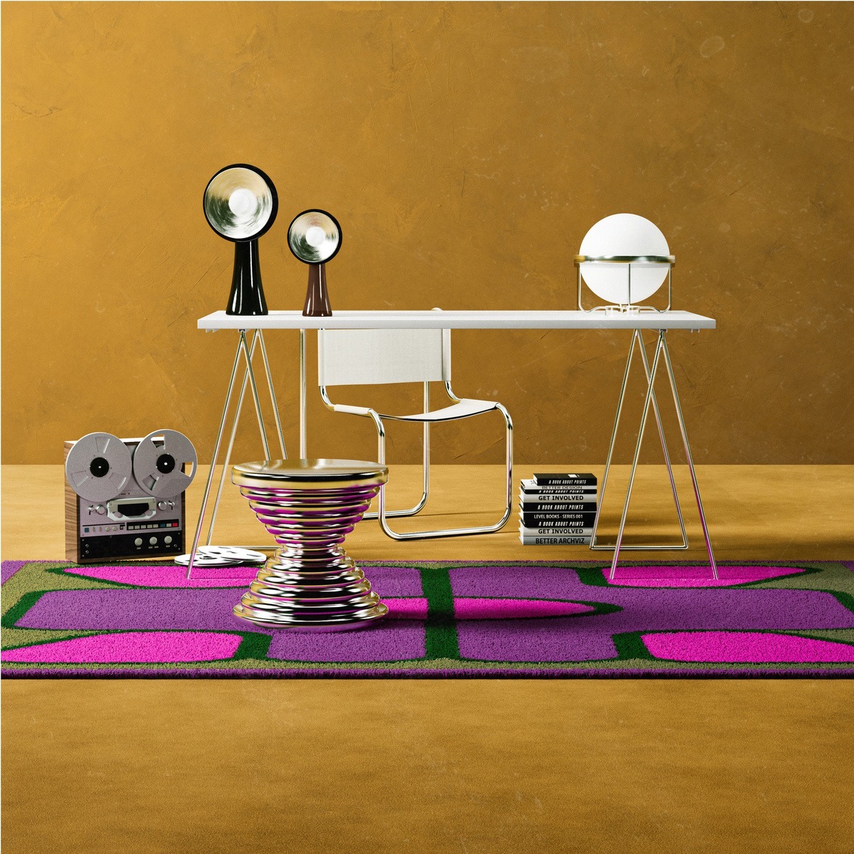 Aux côtés de ces rééditions, des designers emblématiques de la marque de mobilier : Maryvonne réveille aujourd’hui l’univers géométrique et coloré qu’elle partageait avec Jean-Pierre, le déclinant en objets rétro. L’œuvre sculpturale d’Odile Mir, l’une des rares femmes éditées par Prisunic. Enfin, le duo Garrault-Delord, avec les lignes graphiques et les couleurs assumées qui ont marqué leur époque, propose de nouvelles interprétations de leurs luminaires.