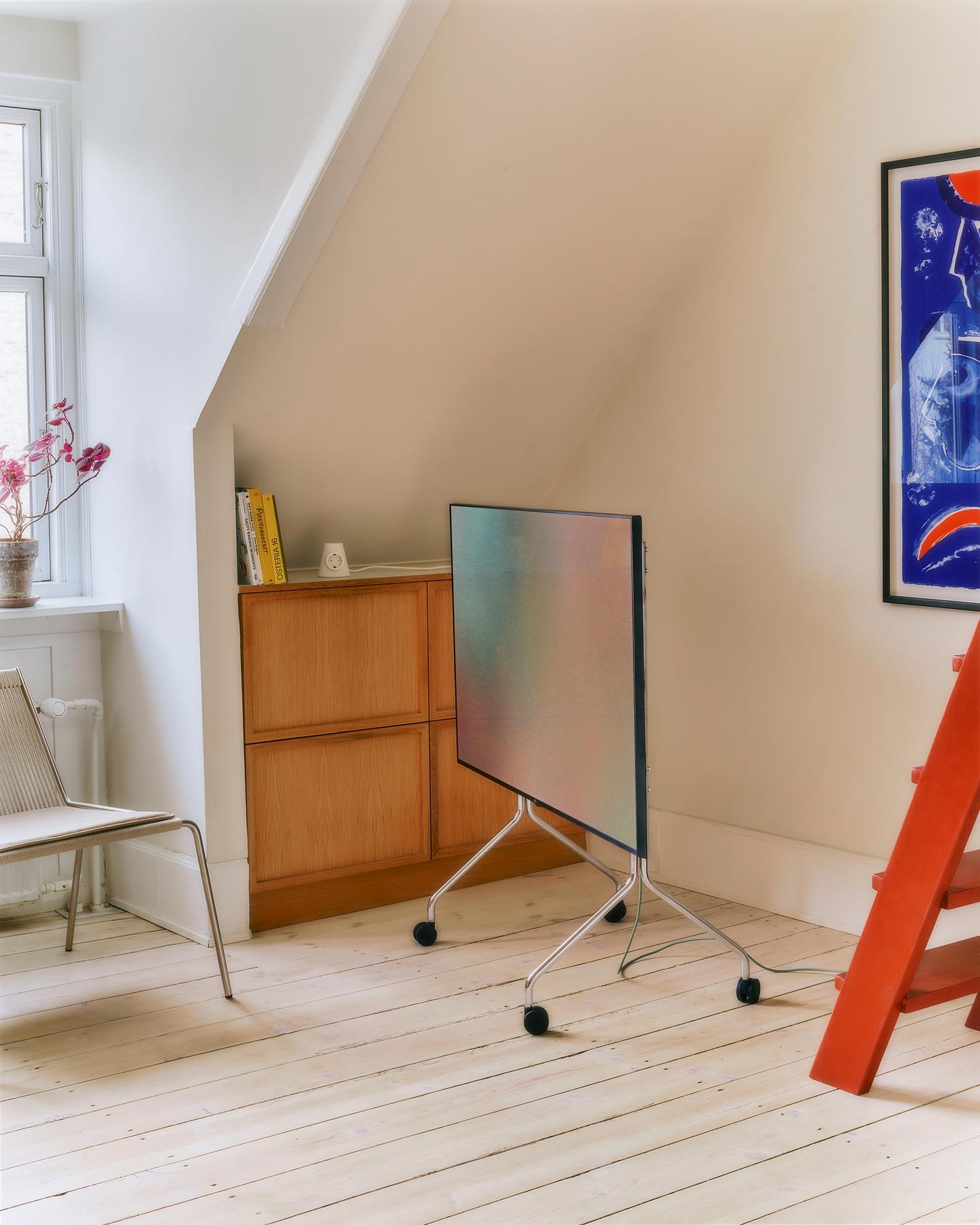 C’est précisément le créneau de la marque danoise Pedestal depuis 2020. Son ambition ? Réinventer le support TV, en l’intégrant dans la pièce de vie de manière esthétique et réfléchie. Loin d’être plaqué contre un mur, dissimulé dans un meuble ou relégué dans un coin, le téléviseur devient presque œuvre d’art : un objet de décoration assumé, désirable et fonctionnel. Derrière cette idée lumineuse, Daniel Brix Hesselager, co-fondateur de Rains (la marque de mode et lifestyle connue pour ses imperméables et ses sacs de pluie), passé maître en l’art de sublimer les accessoires du quotidien.
