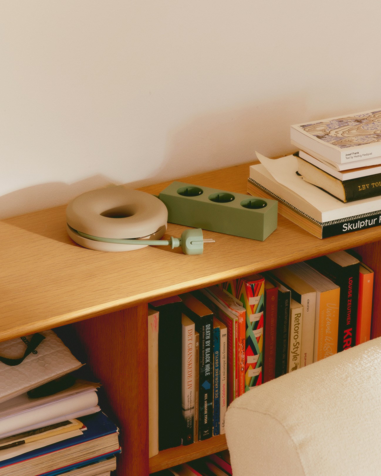 Depuis le lancement de son premier modèle inspiré du chevalet de peintre, la marque (aperçue dans les salons Maison&Objet et MATTER & SHAPE en 2026) n’a cessé d’élargir sa gamme en développant de nouveaux designs, des coloris inédits (rose, orange, vert…), d’autres finitions comme le chrome, mais aussi toute une ligne d’accessoires (multiprises, rallonges enrouleurs de câbles, boîtes…) pour accompagner leur produit phare. Plus ingénieux encore, la marque collabore avec des designers pour réinventer ces objets avec supplément d’âme (et créativité) : les enrouleurs de câbles bagels flexibles ou les boîtes à câbles en forme de maisonnette par BIG-GAME, la multiprise en peluche de NIKO JUNE, les supports de prises en céramique par l’artiste Willem van Hooff…