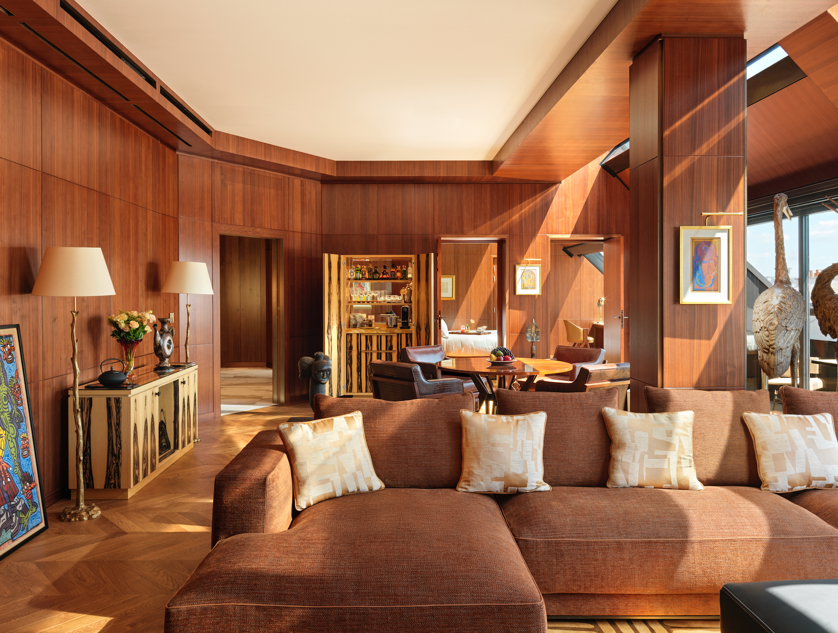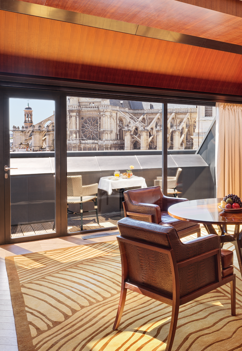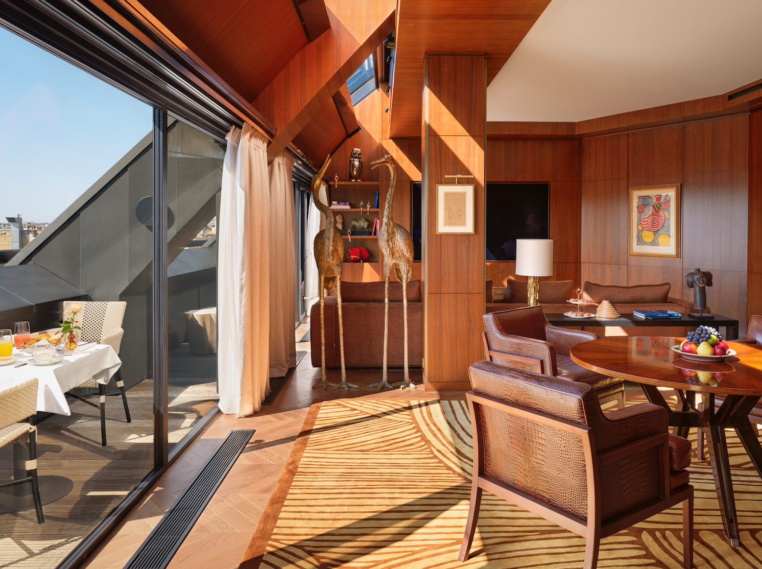 Une architecture qui ne ressemble à rien d’ordinaire. Une vue encore moins. Situé au cœur du 1er arrondissement, dans l’emblématique bâtiment de l’ancienne Poste du Louvre. 130 m² entièrement réaménagés offrant une vue panoramique à 180° sur des monuments emblématiques de la capitale – le Centre Pompidou, le Panthéon et, en premier plan, l’église Saint-Eustache. Laurent Taïeb, fondateur d’Utopik Collection, est un créateur de lieux de vie parisiens depuis plus de trente ans. Il s’est fait connaître avec le restaurant Kong avant de remporter en 2016 le concours pour transformer la Poste du Louvre en hôtel cinq étoiles : l’hôtel Madame Rêve, inauguré en octobre 2021.