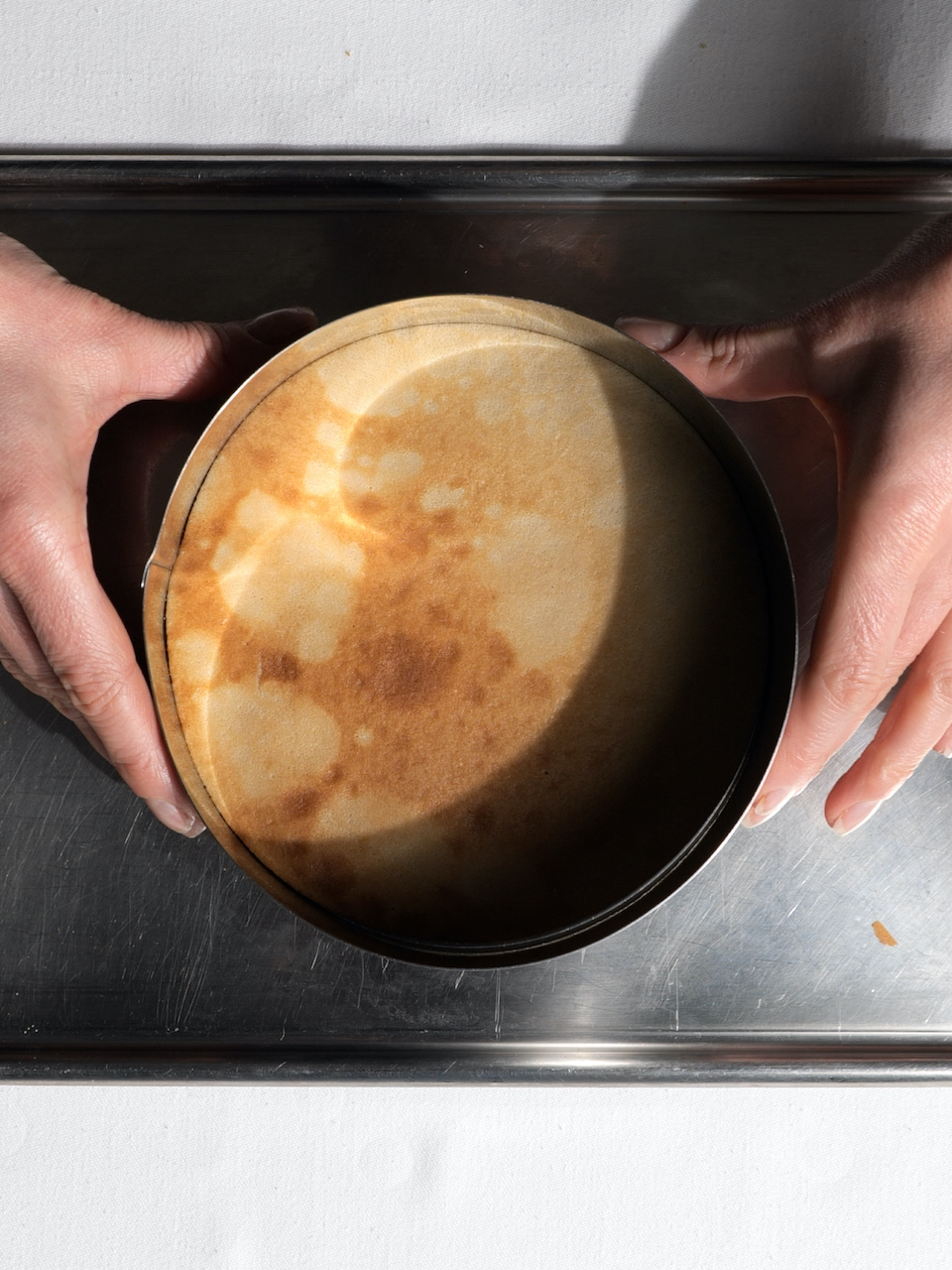Pour un gâteau bien net, nous avons détaillé chaque crêpe à l’aide d’un cercle de 16 cm, utilisé comme emporte-pièce. Les chutes de crêpes feront la joie des plus impatients.