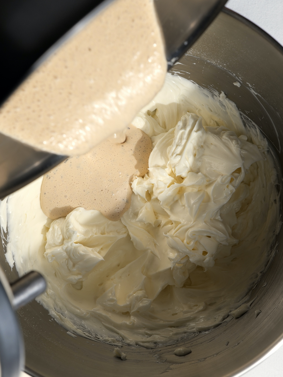 Assouplir le cream cheese avec le sucre glace. Ajouter progressivement la crème infusée froide jusqu’à obtenir une texture lisse et épaisse. Réserver au frais le temps de préparer les crêpes.