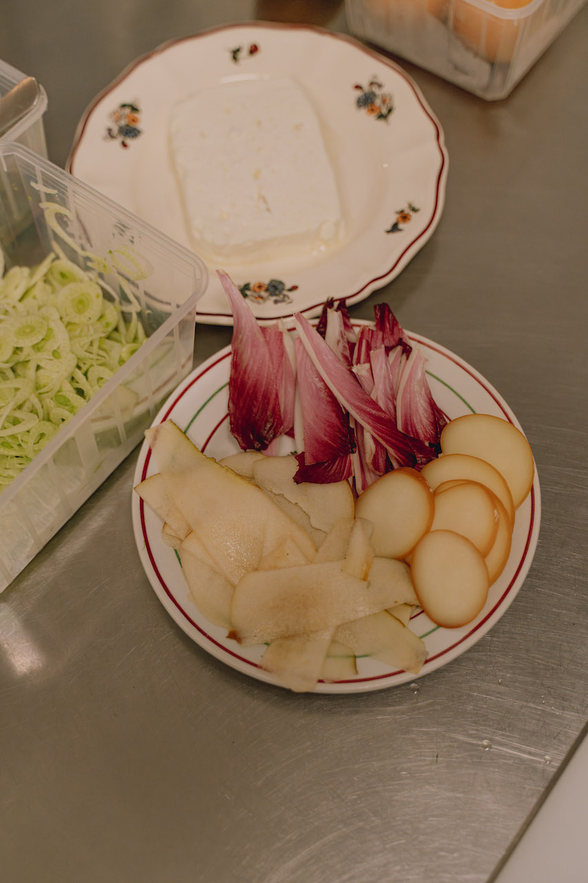 1 radicchio Rosso di Treviso ou radicchio Castelfranco (peut aussi être remplacé par de l’endive carmine, par exemple)