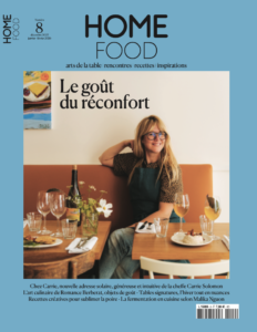Quand le monde devient plus silencieux, on cuisine pour le réconfort, pour retrouver la chaleur d’un plat qui rassemble. C’est cette atmosphère douce et enveloppante que nous avons voulu capter dans ce numéro. La saison y déroule ses nuances à travers des recettes qui invitent à ralentir, à goûter pleinement, à savourer avec intention. La poire s’y décline en quatre compositions où se mêlent fraîcheur, douceur et relief, comme une petite ode à l’hiver. On y rencontre Romance Berberat qui nous ouvre son univers sensible, à la croisée du design et du goût, avec des recettes qui convoquent ses souvenirs d’enfance : un bouillon sauvage aux parfums de sous-bois, des coquins à la gelée de coings envoûtante, des pains d’anis sculptés de motifs qui transforment l’enveloppe en ornement ; une cuisine qui se regarde autant qu’elle se déguste. La cheffe Carrie Solomon apporte, elle, une lumière chaleureuse et instinctive. Ses pickles de saison, ses beignets de butternut et son pain perdu aux fruits confits et labneh fouetté composent une partition gourmande, pensée pour accompagner les jours courts et réveiller la table d’une énergie généreuse ; des recettes à la fois simples et éclatantes, qui donnent envie de cuisiner rien que pour le plaisir d’offrir. Au fil des pages, l’hiver se raconte aussi dans les objets qui nous entourent, dans les tables que l’on compose, dans la manière dont un four allumé suffit à créer un foyer. On découvre des couleurs qui dialoguent avec la saison, et ces détails du quotidien qui font du repas un moment à part, riche d’inspiration et de souffle apaisant…