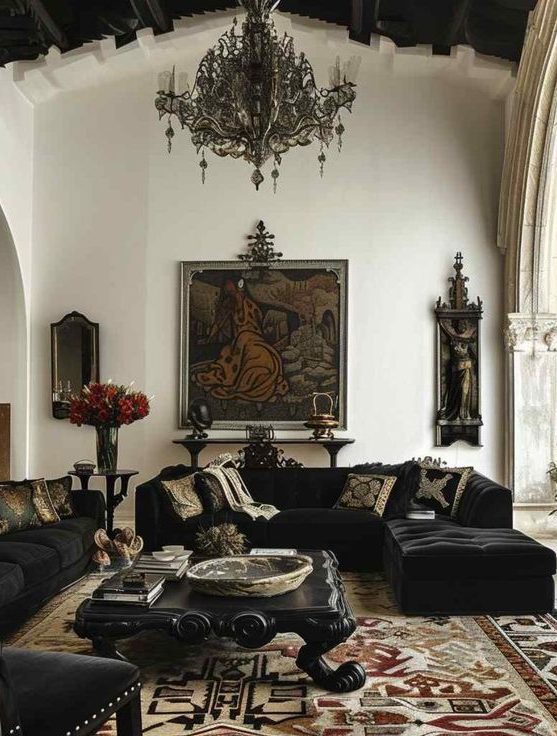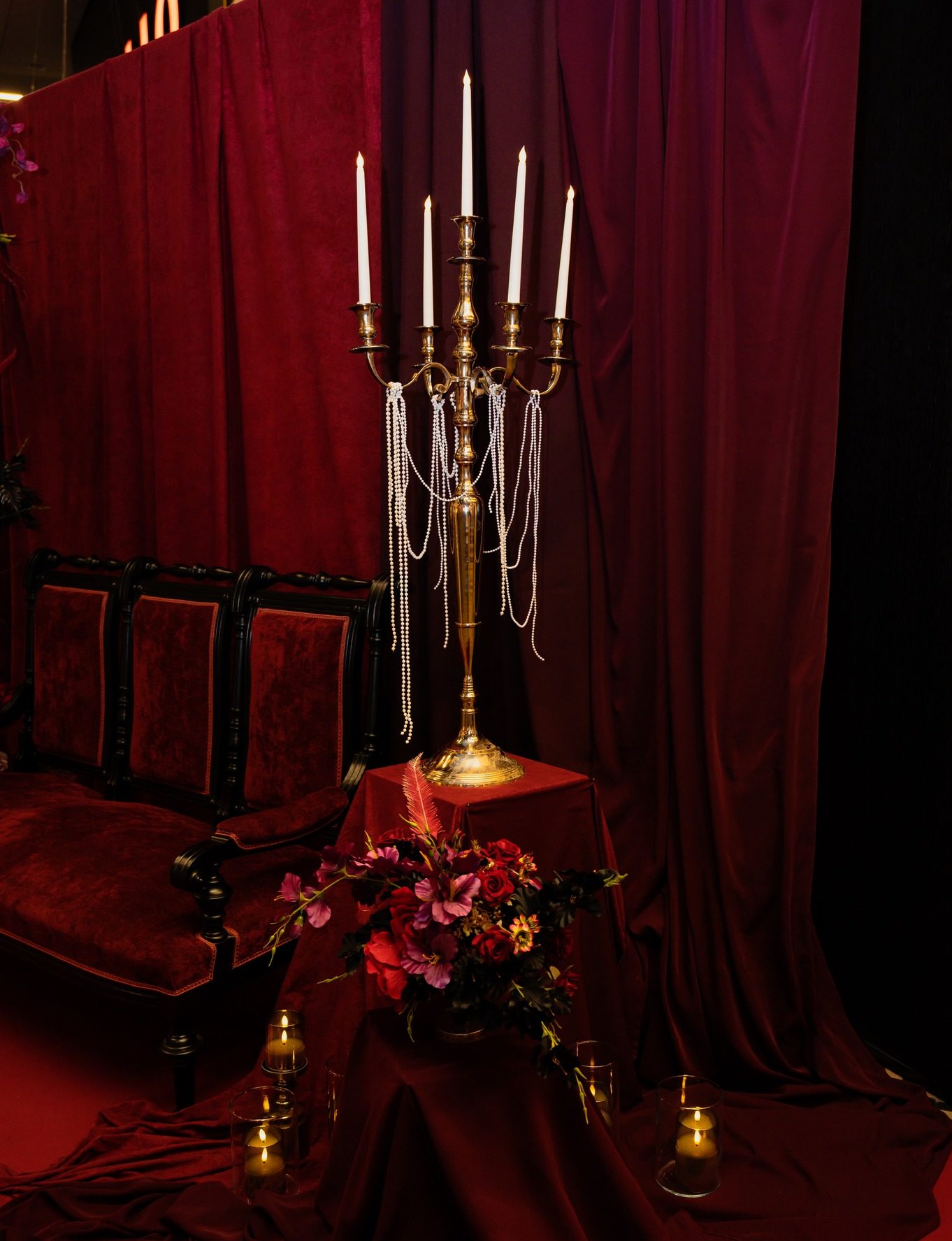 Il était une fois des lecteurs qui ne se contentaient plus de rêver via les pages de leurs romans. Les personnages de leur pièce de théâtre préférée, ce sont eux à présent. Leur chambre à l’image de la dernière scène d’une romance ténébreuse. Que la salle de cérémonie soit baignée de lumière de chandelles et de dentelle cathédrale. Ce mouvement investit les mariages, les intérieurs, les garde-robes à coup de drapé, velours, fer forgé, de grandes bougies hautes et d’imposants chandeliers.