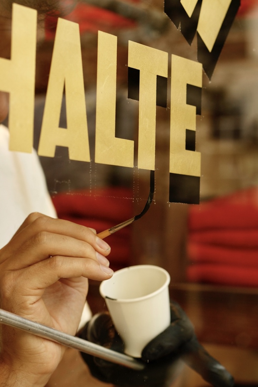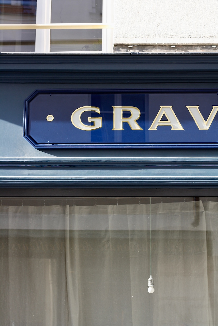C’est très variable selon les projets. Nous dessinons souvent les lettres spécifiquement pour chaque commande – on parle d’ailleurs de lettrage plutôt que de typographie, qui désigne, elle, un système complet de caractères. Nous ne créons que les lettres nécessaires à l’enseigne ou au mot à graver, ce qui laisse une grande liberté formelle. Ce travail se fait en amont, parfois en étroite collaboration avec des graphistes.